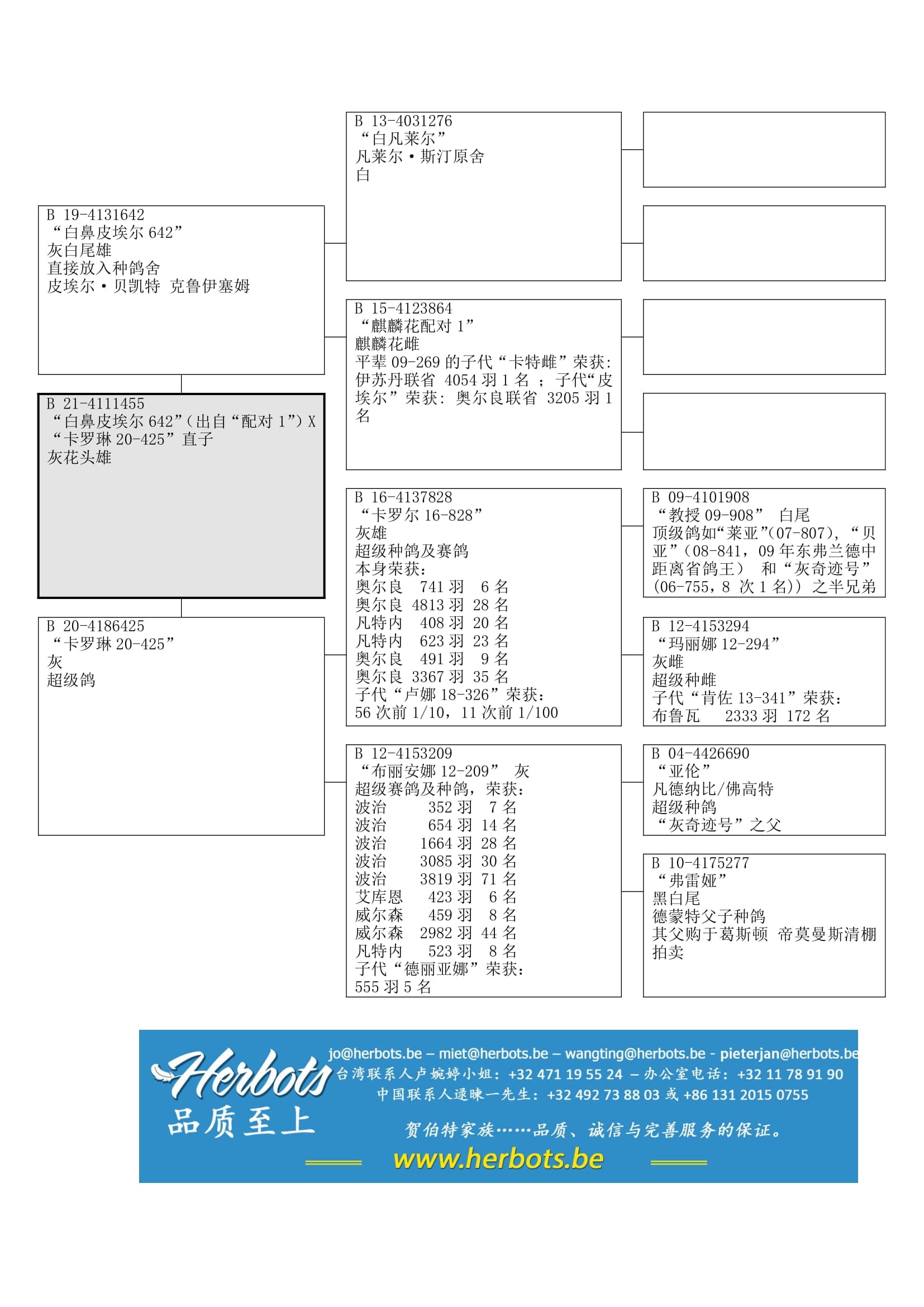荣获: 波治 352羽7名 – 艾库恩 423羽6名 - 威尔森 459羽8名 – 凡特内 523羽8名 - 等等.