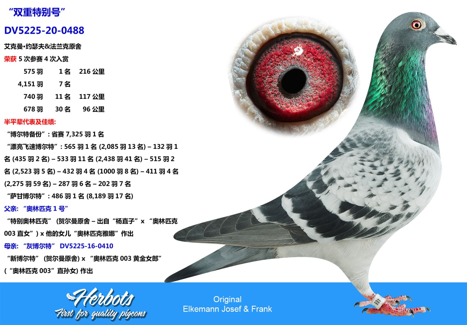 “年轻杨” (超级种鸽 – “杨”和“奥林匹克 003”直孙) x “劲力号直女”作出