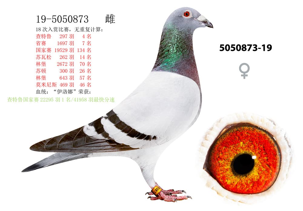 血统:“伊洛娜”荣获:查特鲁国家赛22295羽1名/41958羽最快分速