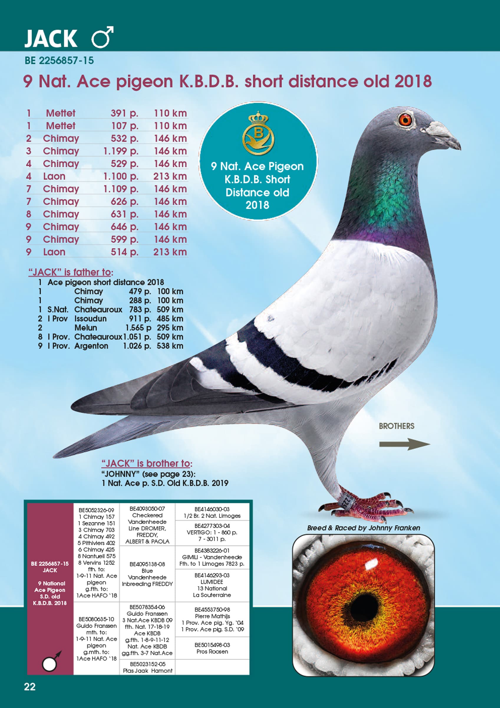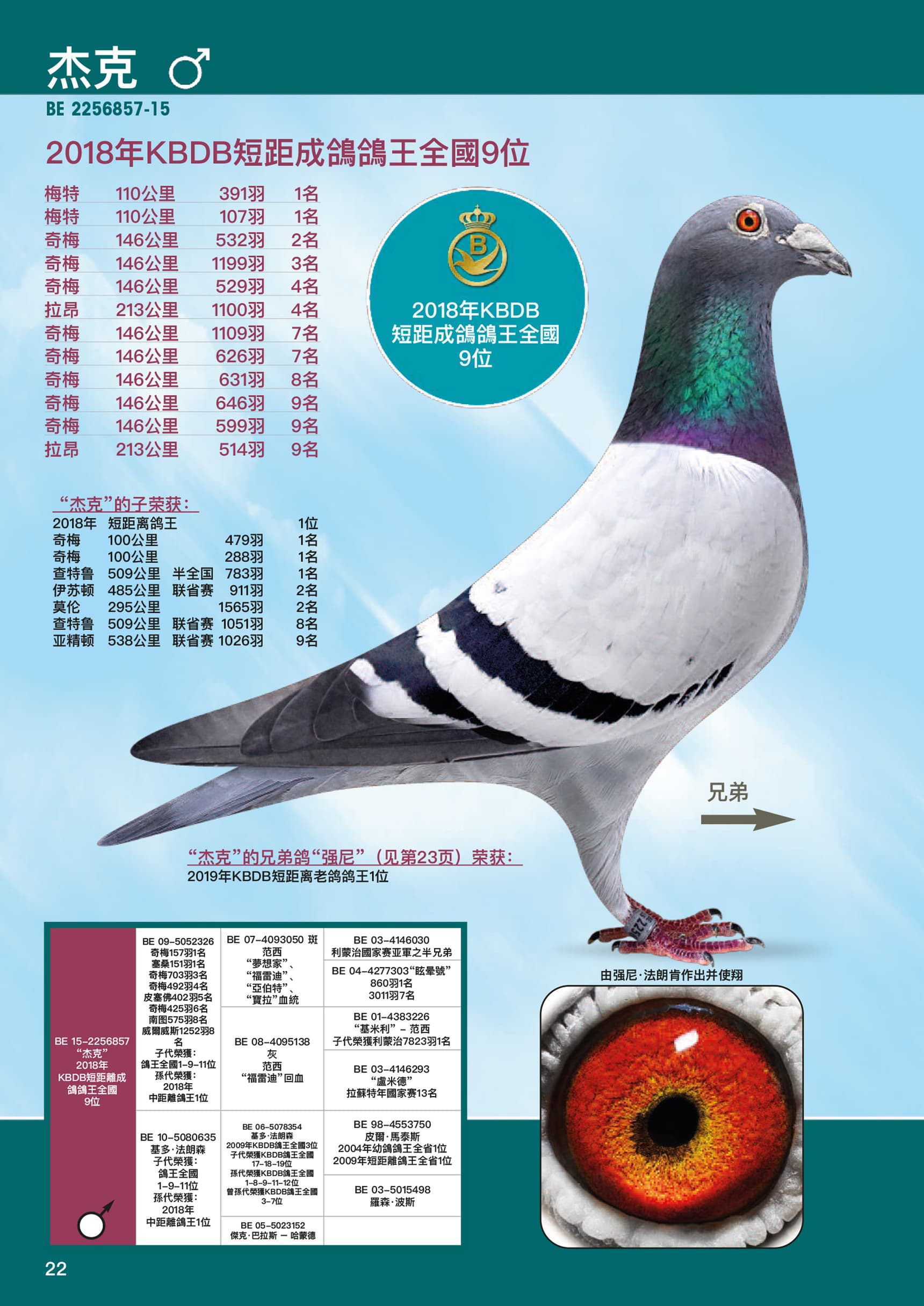 全兄弟 "強尼"榮獲: 19年KBDB短距離鴿王全國1位
