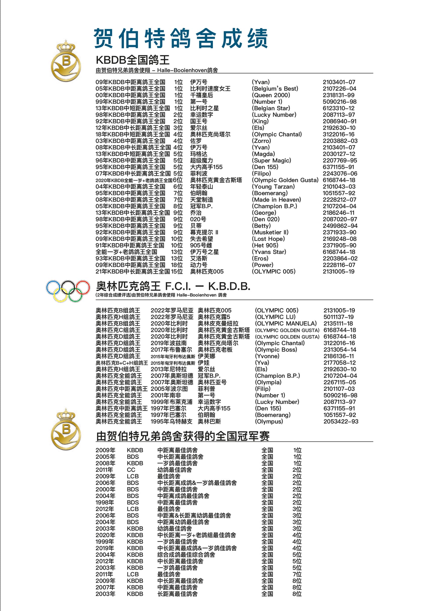 父親: BE2313054-14 “奧林匹克老闆”,榮獲: