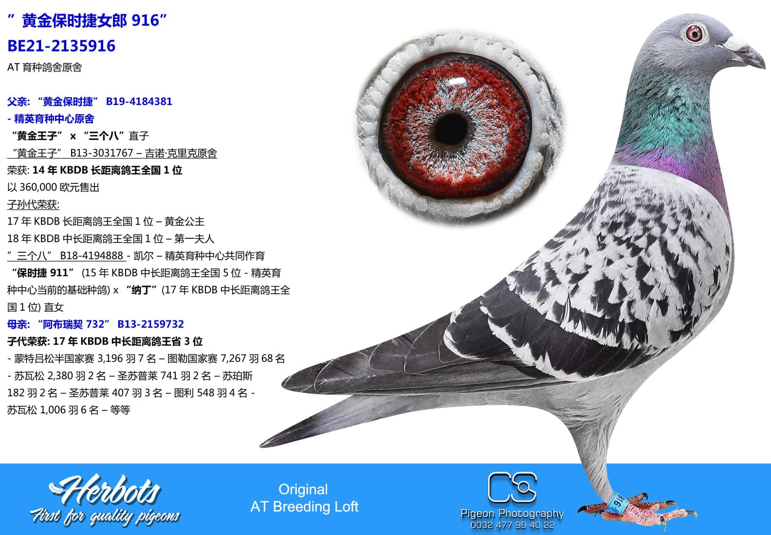 “保时捷 911” (15年KBDB中长距离鸽王全国5位 - 精英育种中心当前的基础种鸽) x “纳丁”(17年KBDB中长距离鸽王全国1位) 直女