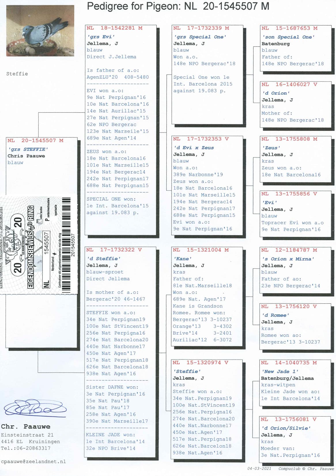 BOY JADEFather is grandson STEFFIE, JELLEMAMother is direct JELLEMA, inbred JADE