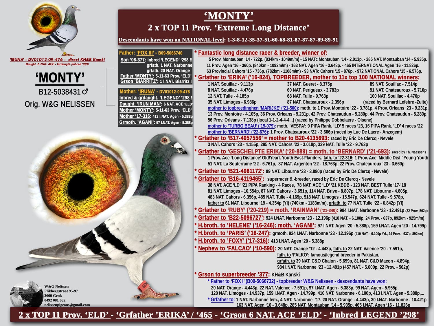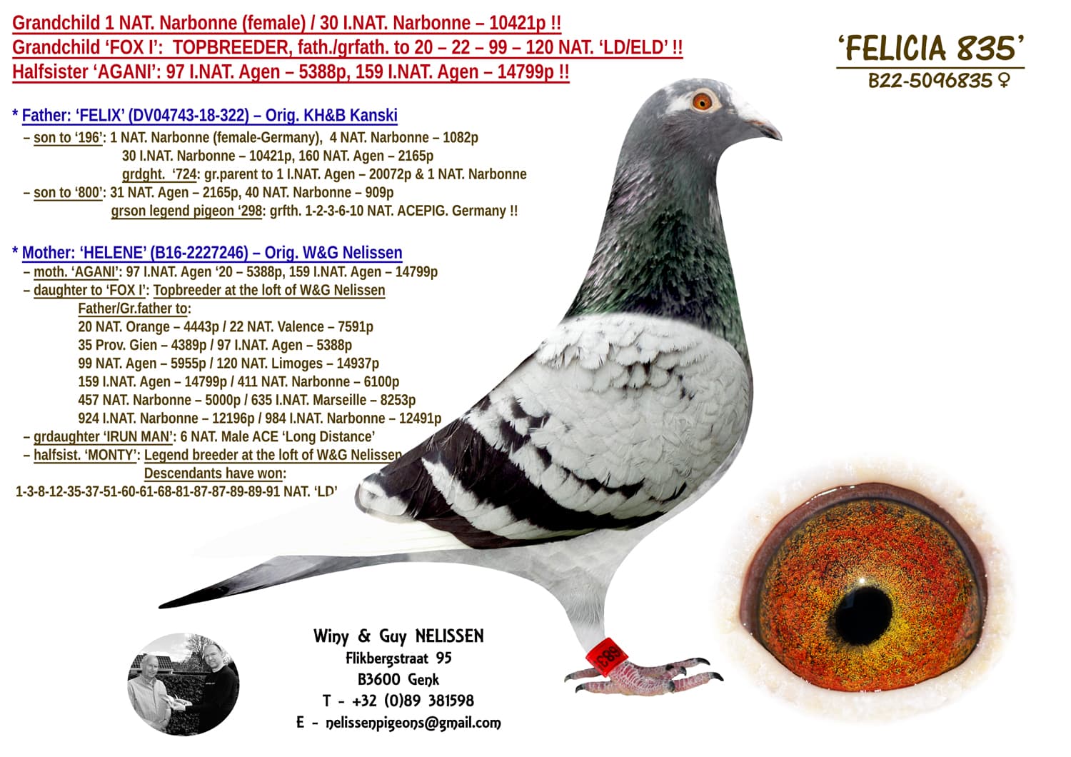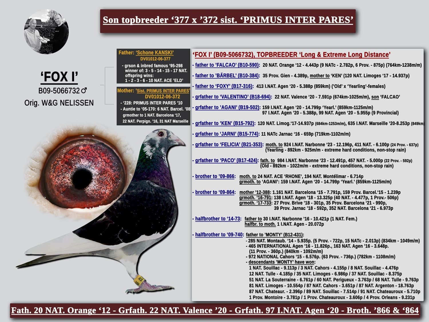 Grandchild ‘FOX I’: TOPBREEDER, fath./grfath. to 20 – 22 – 99 – 120 NAT. ‘LD/ELD’ !!