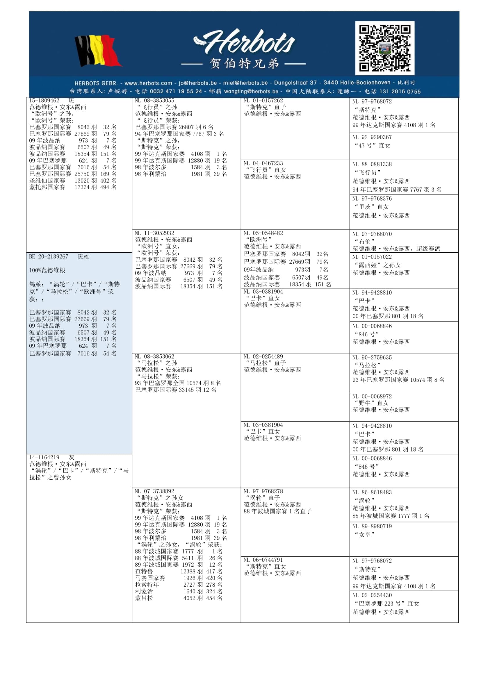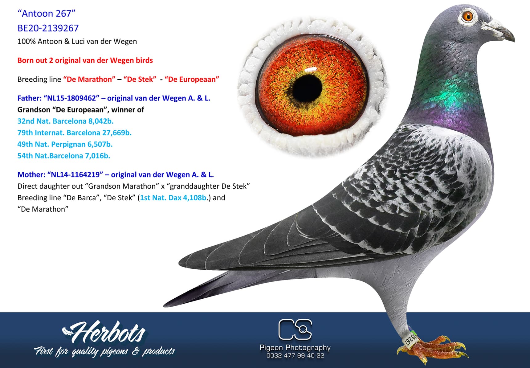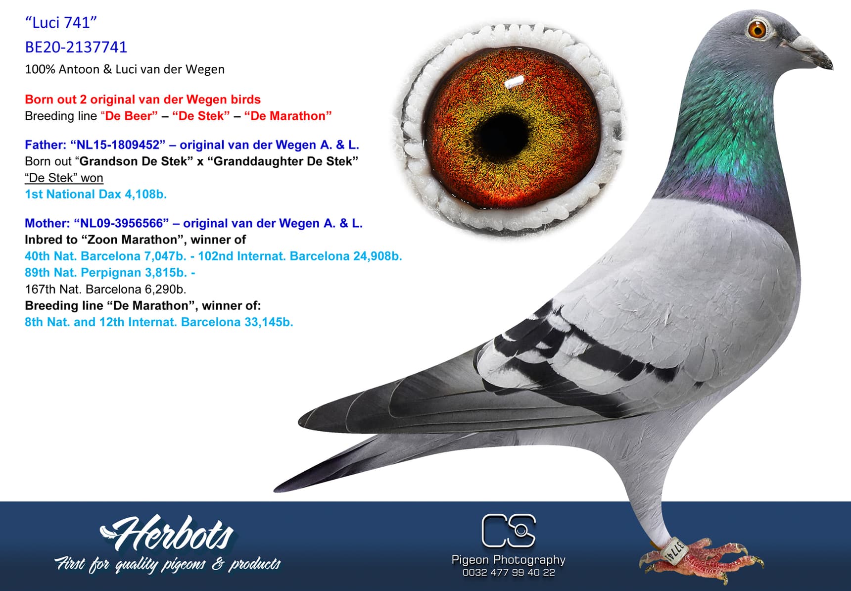 作育者:100% VAN DER WEGEN A. & L. 100% 纯范德维根血系