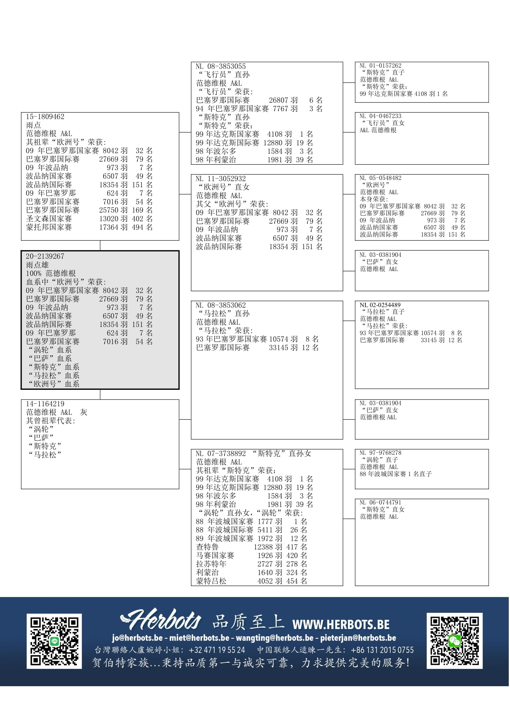 作育者:100% VAN DER WEGEN A. & L. 100% 纯范德维根血系