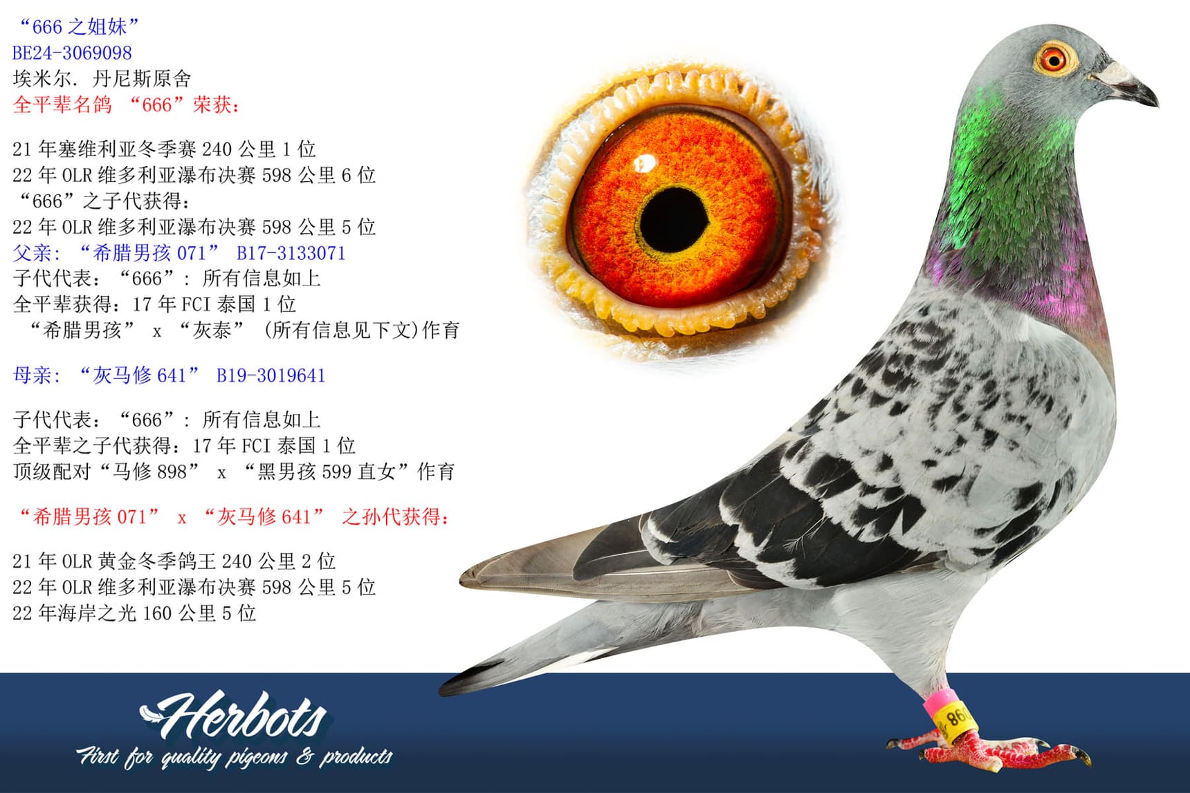 全平辈名鸽 “666”荣获: