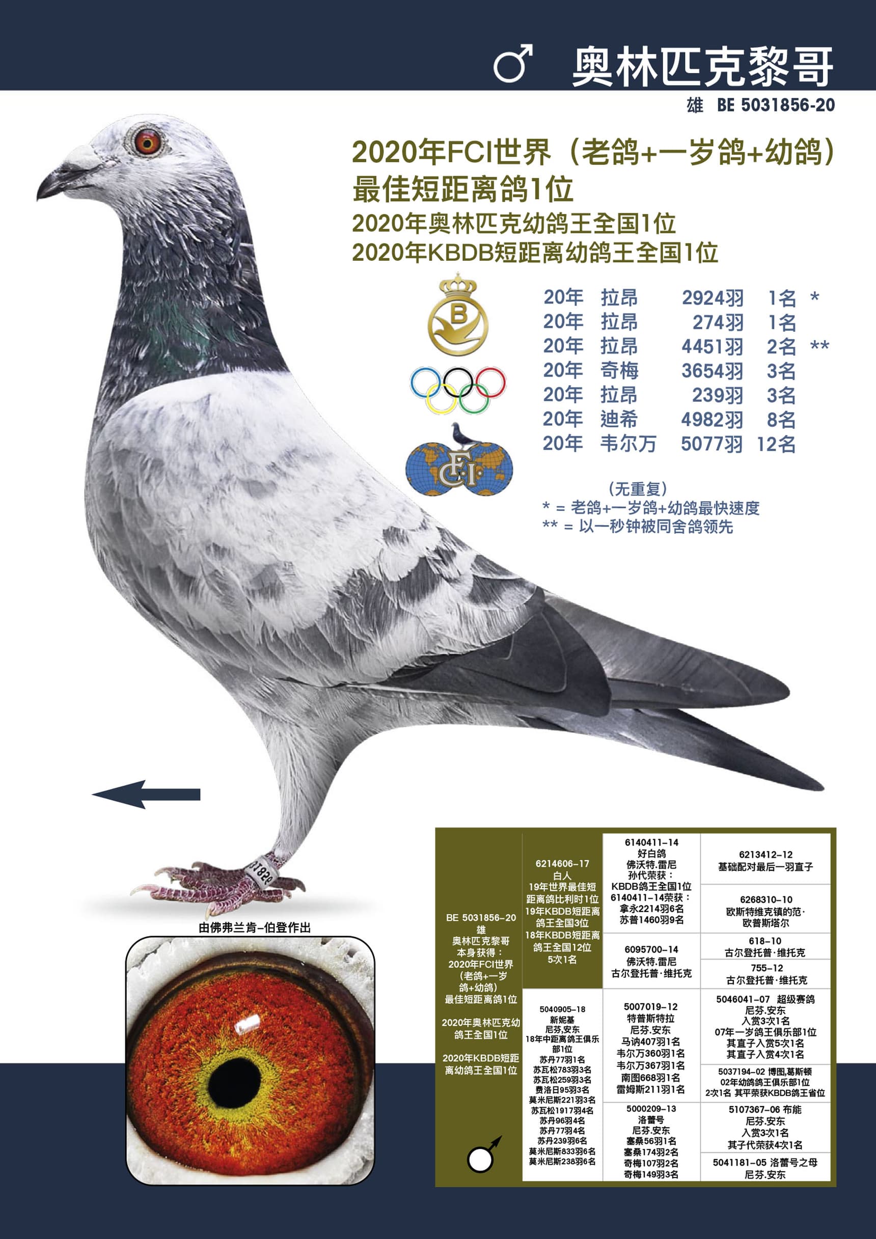 奥林匹克黎哥”: 20年KBDB短距离幼鸽鸽王全国1位