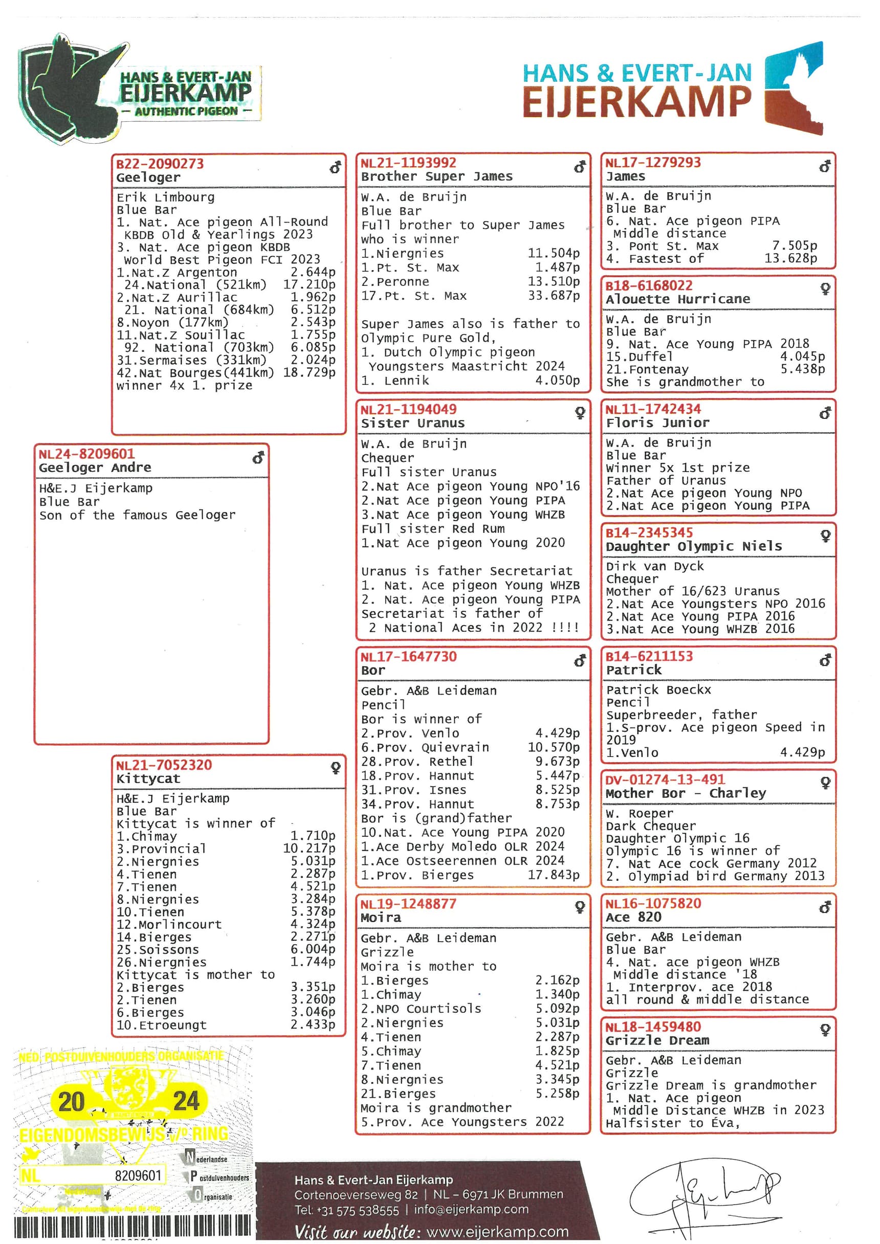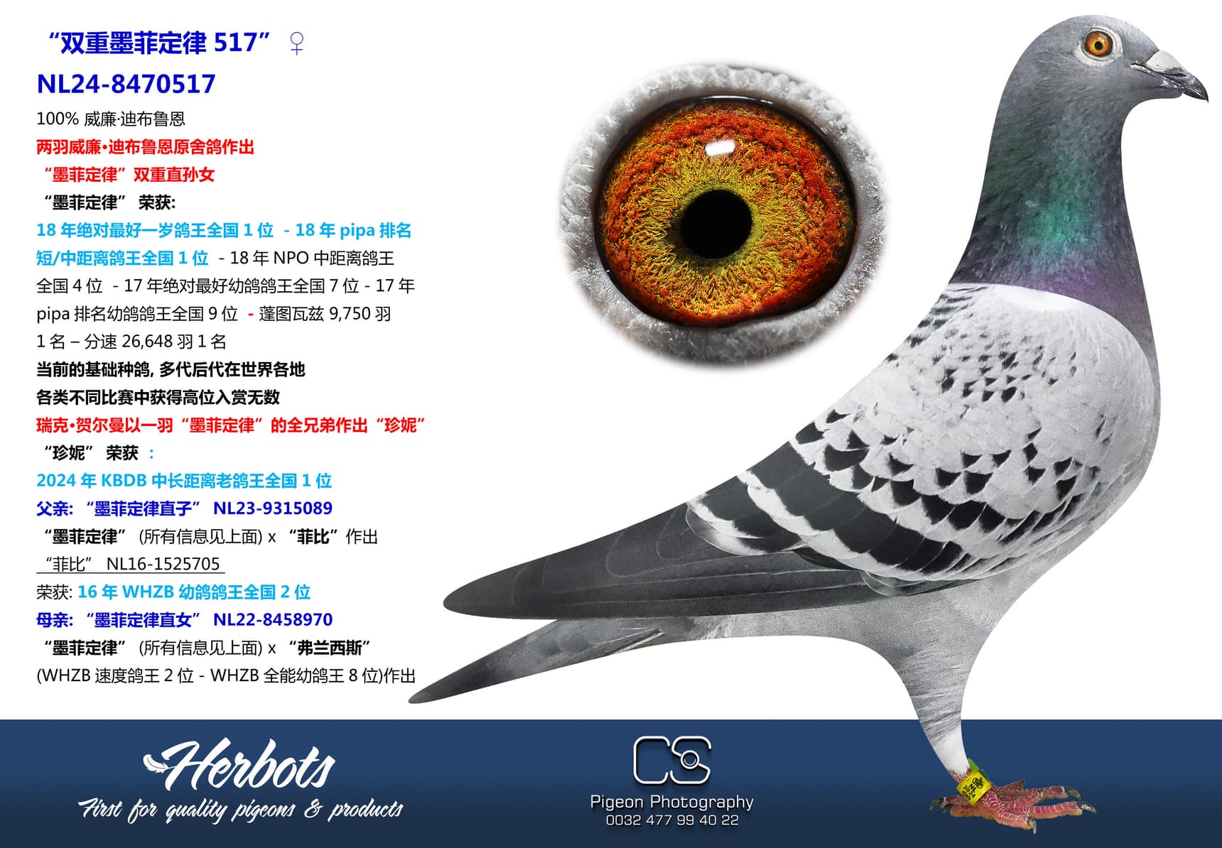 全国鸽王1位, 1位, 4位, 7位和 9位