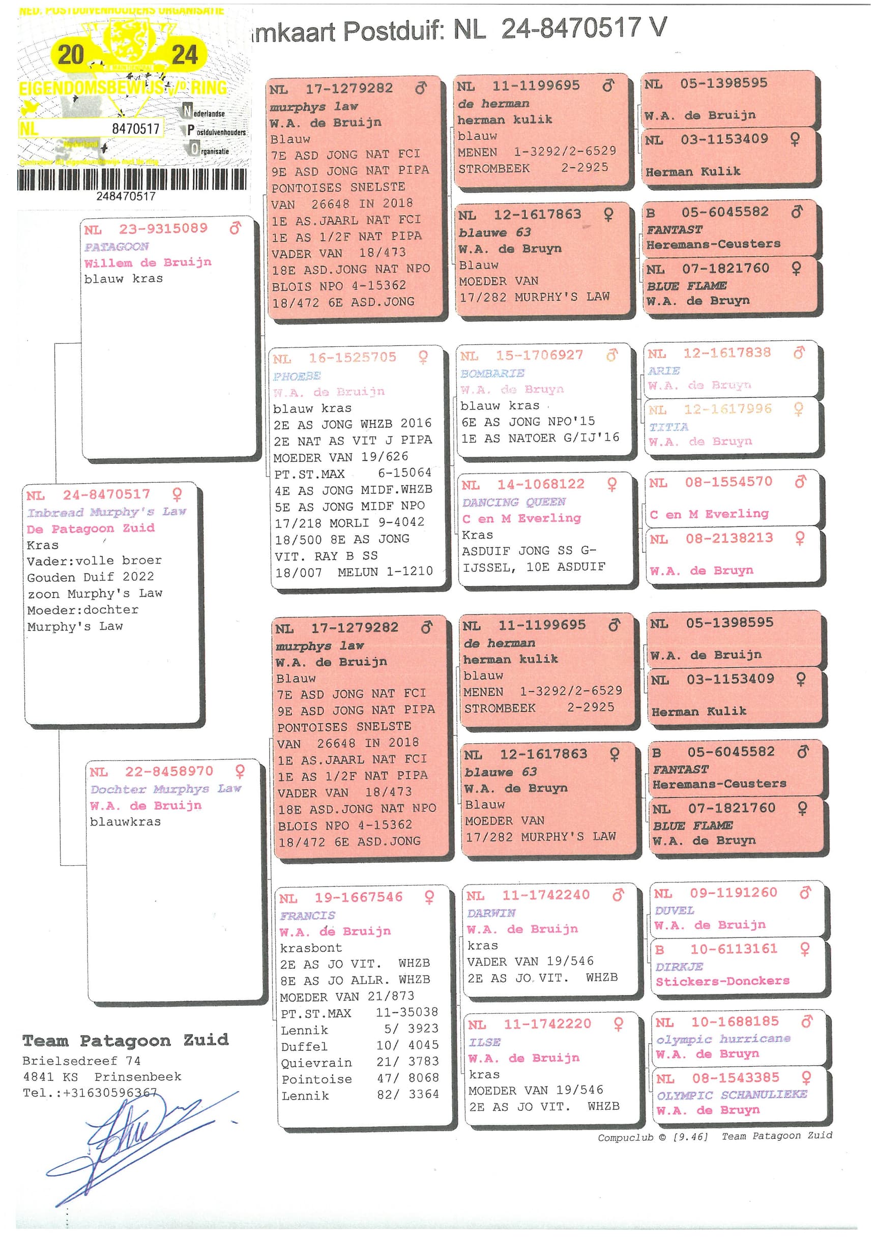 当前的基础种鸽, 作出多代优秀之鸽,