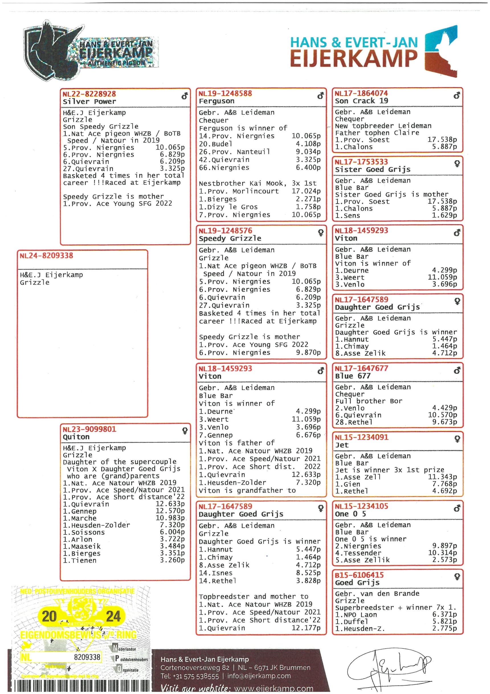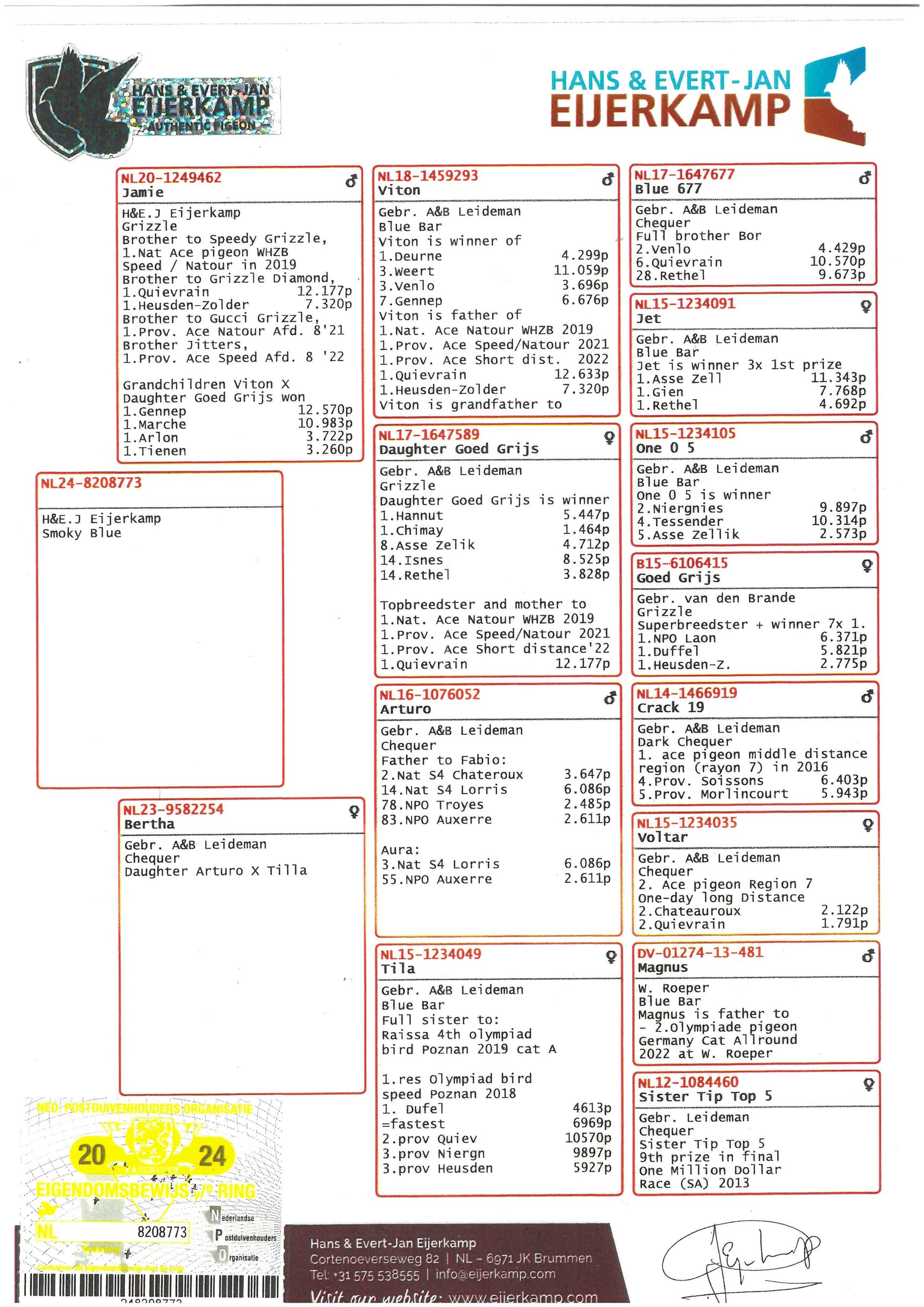 “阿图罗” ( 作出9羽不同冠军鸽) x