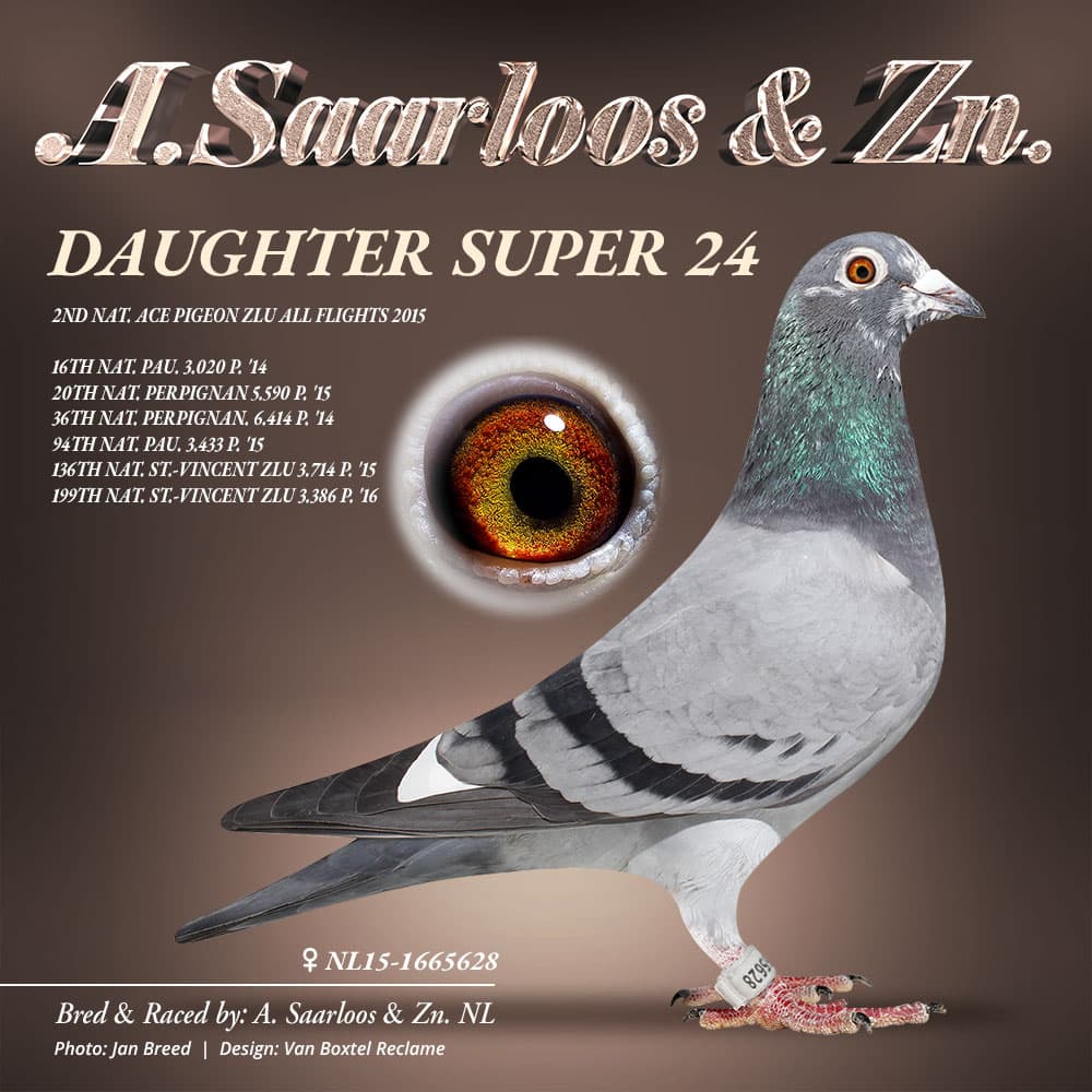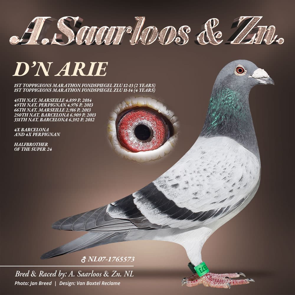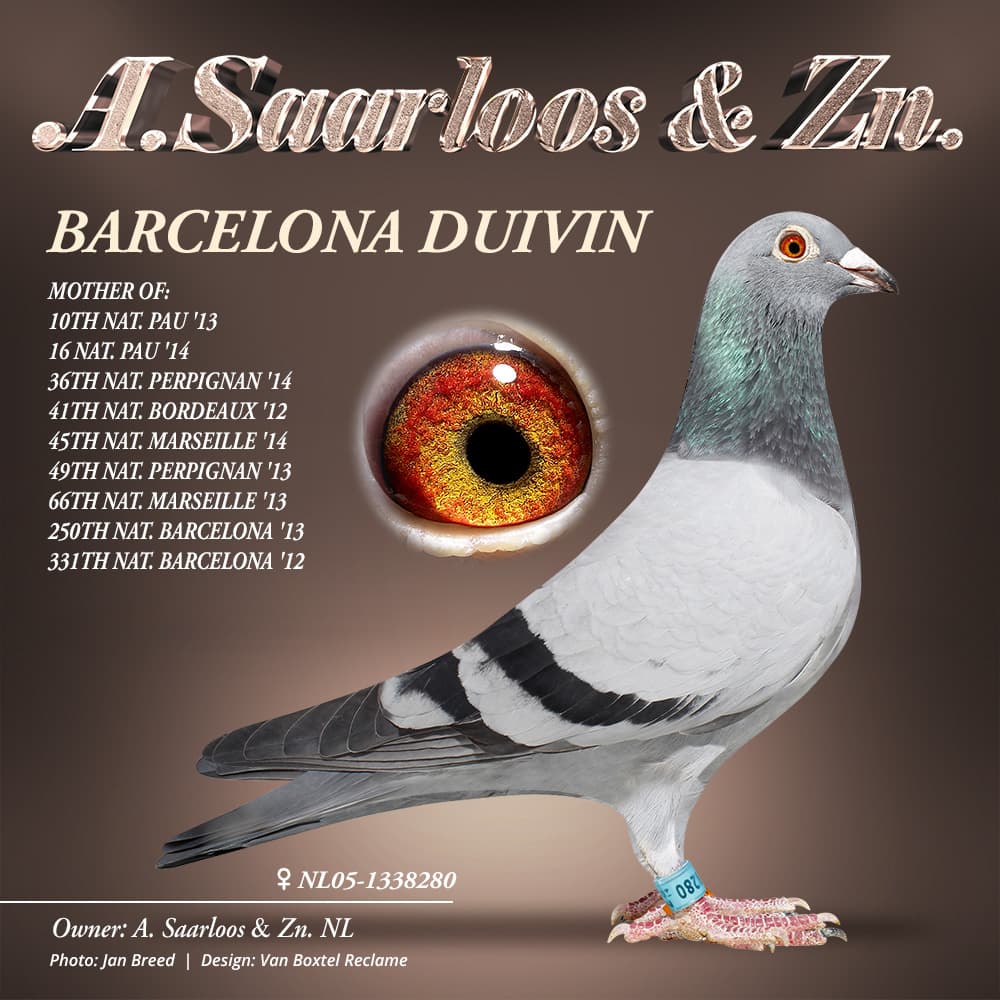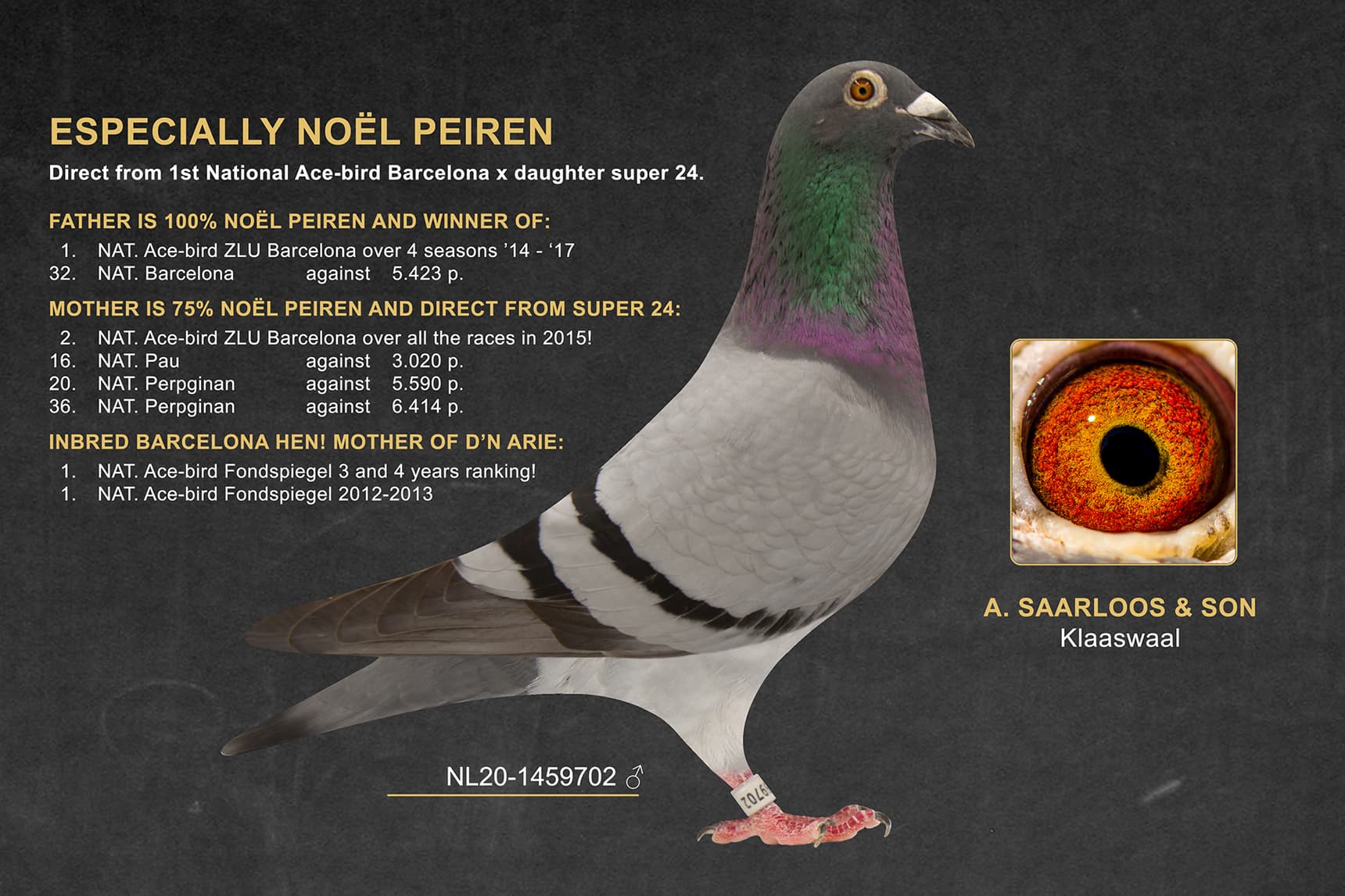 Directly from the 1st National Ace-bird ZLU Barcelona! Specially from the breeding loft of A. Saarloos & Son. Esp. Noël Peiren, Zedelgem, BE!