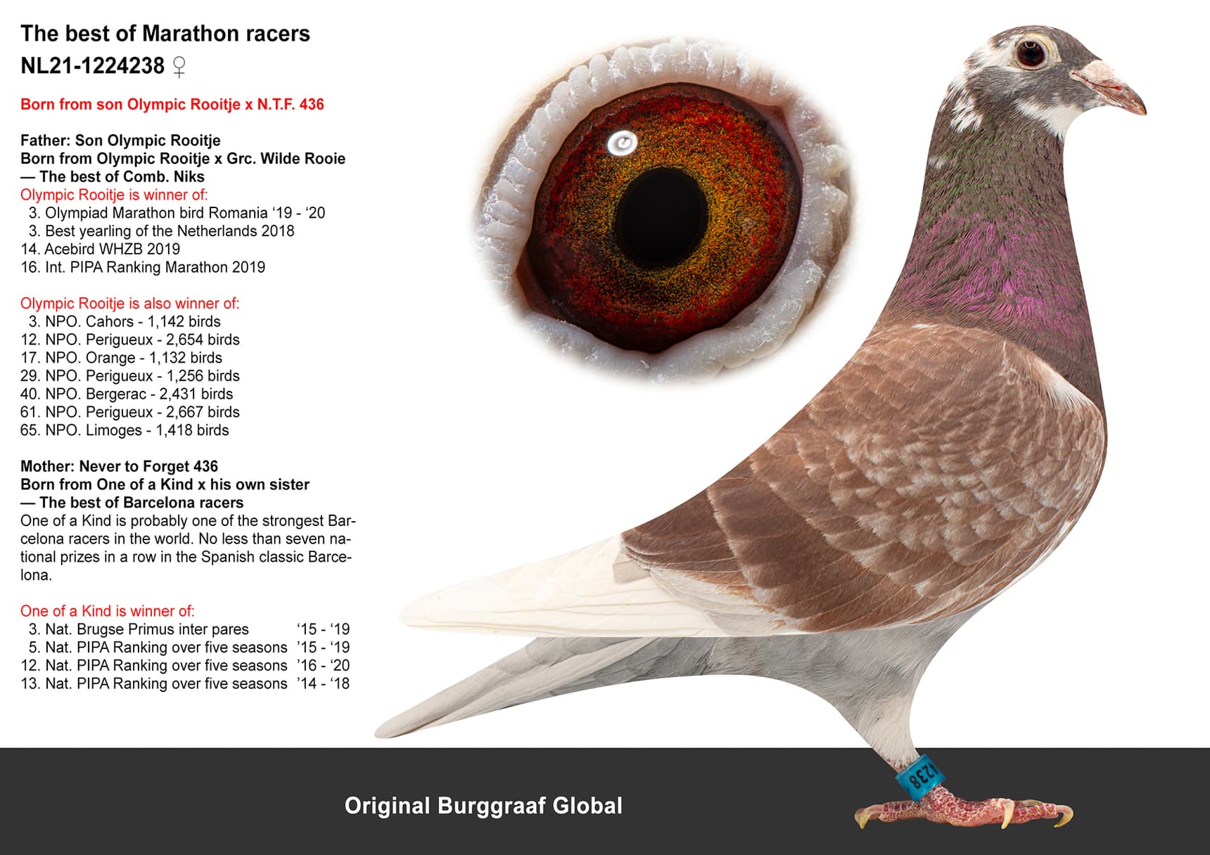Specially from the breeding loft of Burggraaf Global. This pigeon has not been raced!