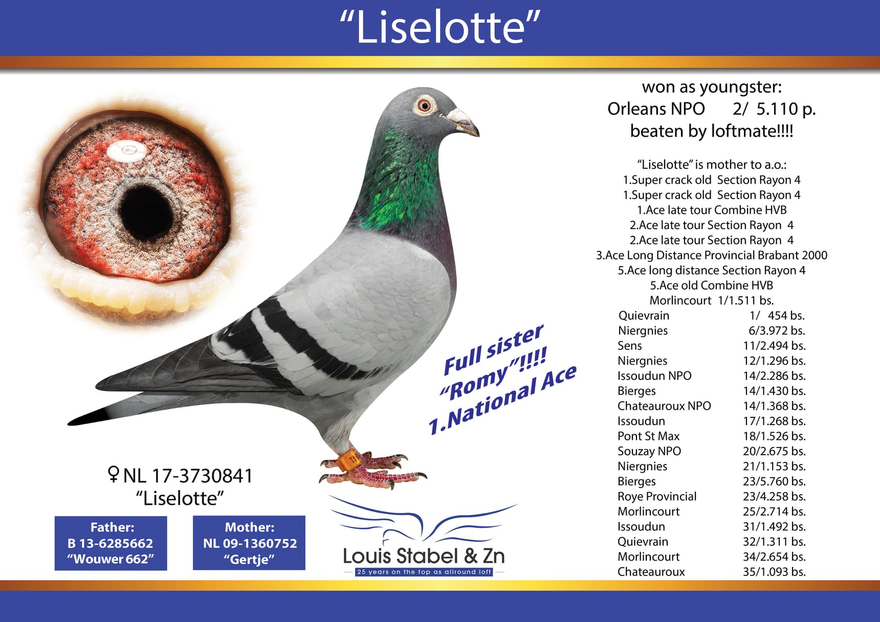 全平辈“罗密”获得:秋赛鸽王全国1位
