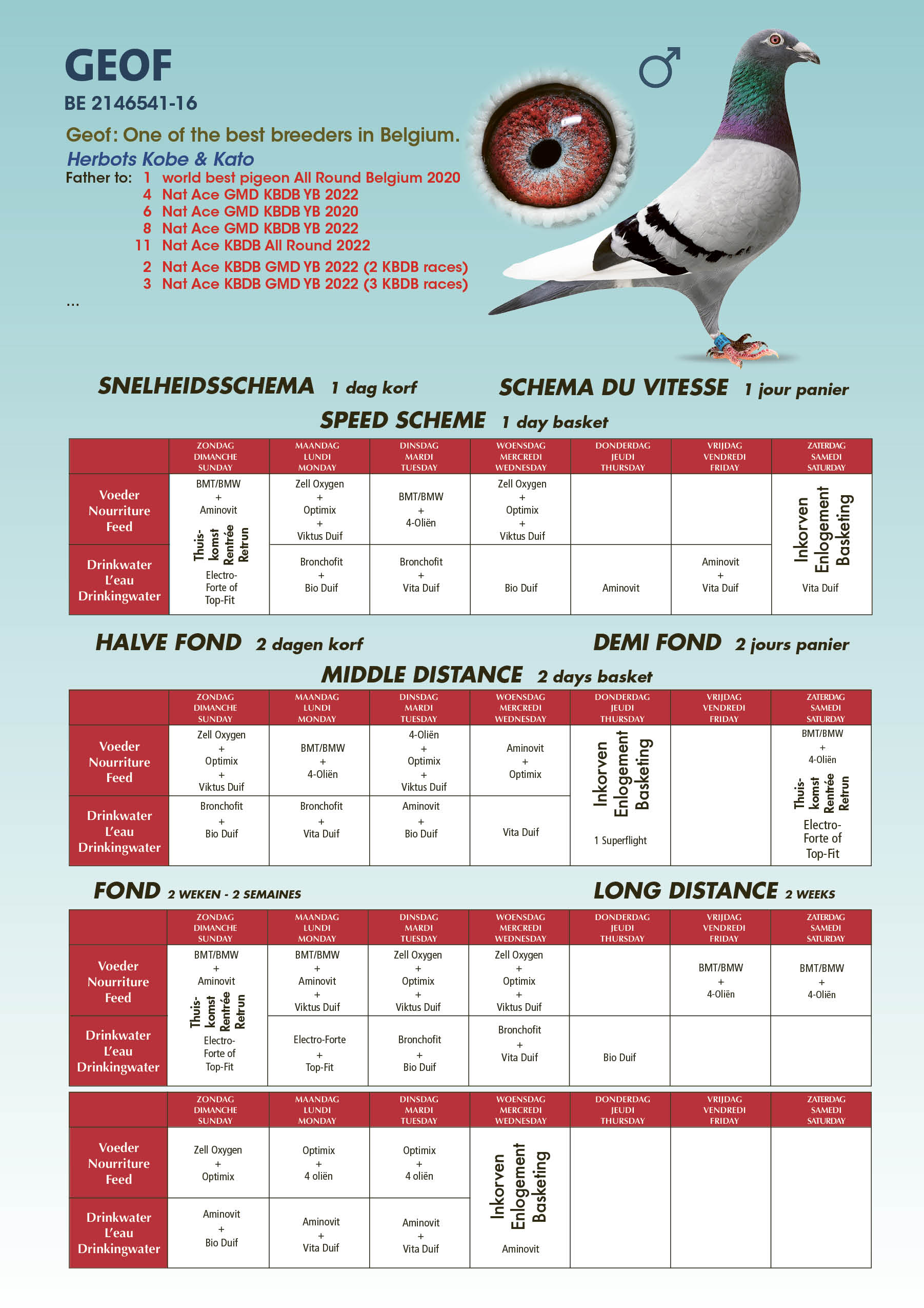 我们的产品享誉全球,专为冠军而开发,提供顶级质量以实现最佳表现。产品内富含高质量的营养物质和维生素,帮助鸽子保持健康、强壮和快速。冠军赢家使用冠军产品,相辅相成!